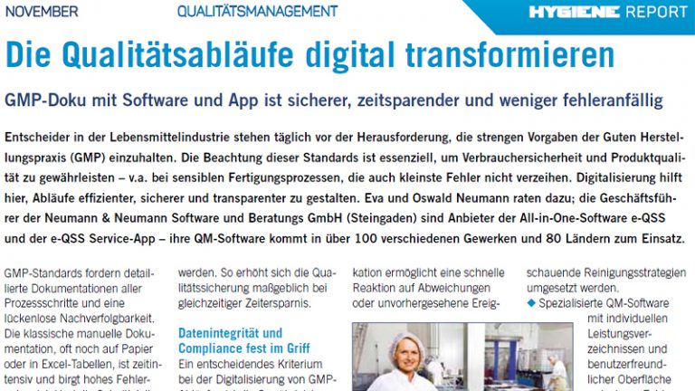 Entdecken Sie e-QSS, die Software für Ihre erfolgreiche Qualitätssicherung! e-QSS ist die perfekte Grundlage für die Digitalisierung von Qualitätsprüfungen und -prozessen und ist in über 80 Ländern im Einsatz.
